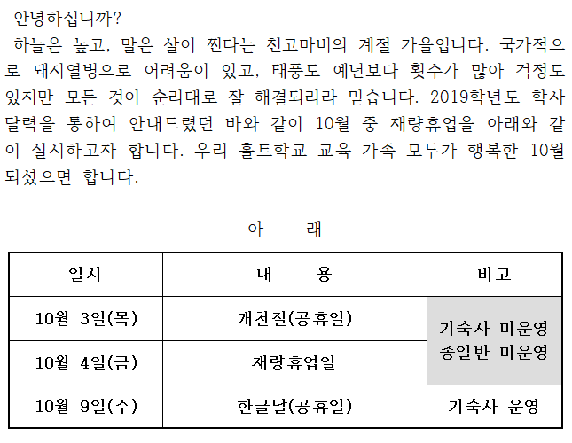 10¿ùÁß Àç·®ÈÞ¾÷ÀÏ ¿î¿µ¾È³»