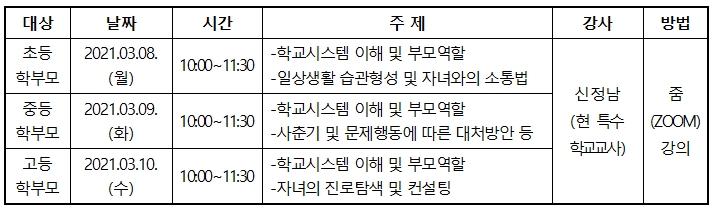 °æ±âÆò»ý±³À°ÇнÀ°ü¿¡¼´Â Àڳ౳À° Àü¹®°¡·Î¼ÀÇ Çкθ𠿪·® °È¸¦ À§ÇØ ¡¸Çкθð±³À°¿ø¡¹ ÇÁ·Î±×·¥À» ¿î¿µÇϰí ÀÖ½À´Ï´Ù. Ư¼öÇб³ Çкθ𸦠´ë»óÀ¸·Î ¾Æ·¡ °Á¸¦ ¿î¿µÇÏ¿À´Ï °ü½É ÀÖÀ¸½Å Çкθð´Ô²²¼´Â ¸¹Àº ½Åû ¹Ù¶ø´Ï´Ù.