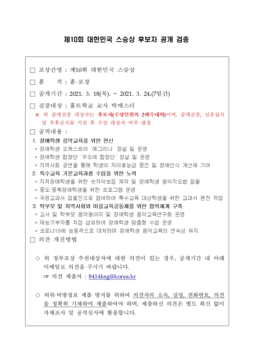 Á¦10ȸ ´ëÇѹα¹ ½º½Â»ó Èĺ¸ÀÚ °ø°³°ËÁõ