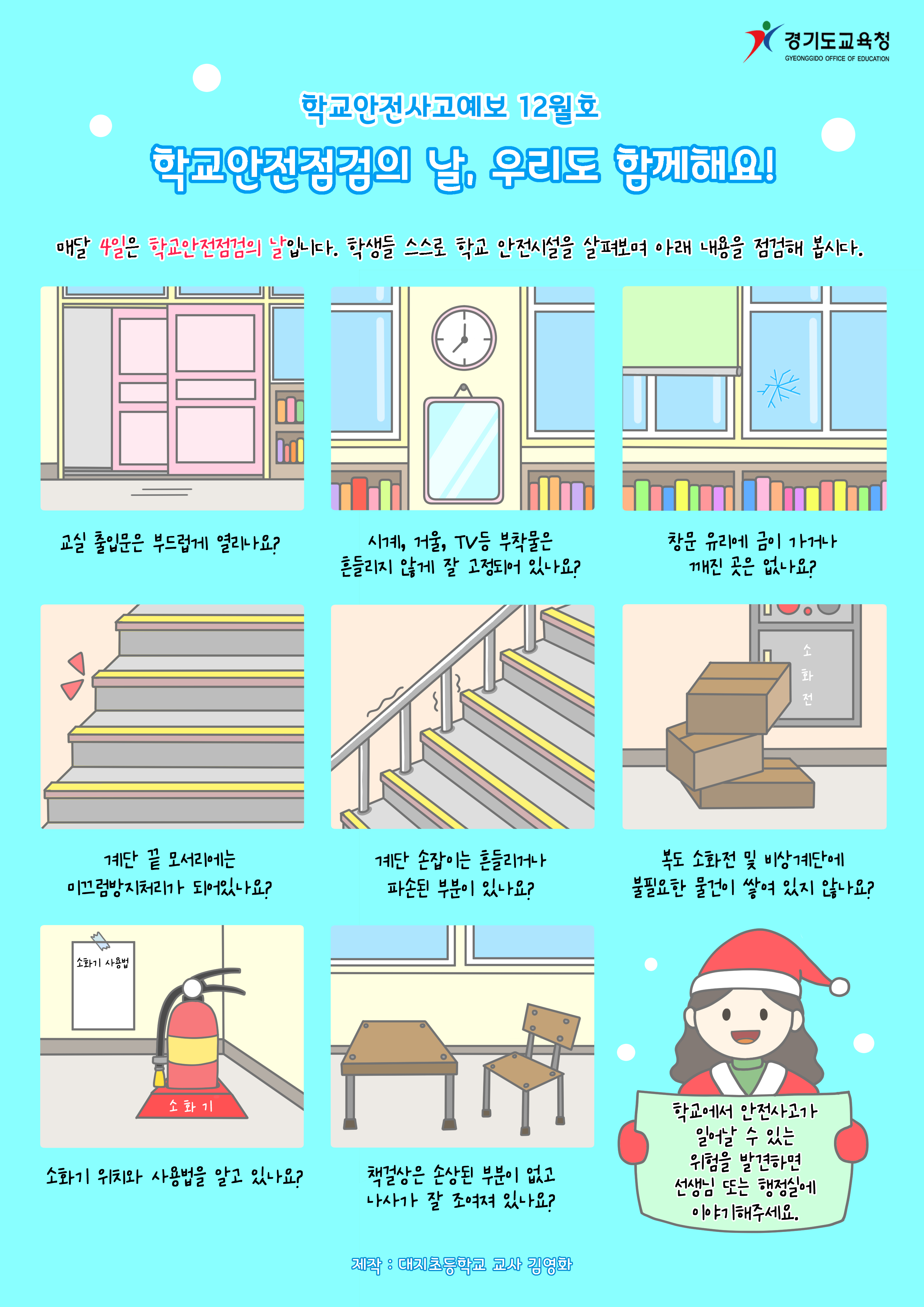 Çб³ ¾ÈÀü »ç°í ¿¹º¸Á¦´Â '¾Ë°í ÀÖÁö¸¸ °£°úÇϱ⠽¬¿î' ½Ã±âº° ¾ÈÀüÃë¾à ºÎºÐ¿¡ ´ëÇÑ ¿¹º¸¸¦ ÅëÇØ Çлý°ú ±³Á÷¿ø ¸ðµÎ°¡ ¾ÈÀü¿¡ ´ëÇÑ °æ°¢½ÉÀ» Àϱú¿ì°í, »çÀü¿¡ »ç°í¸¦ ¹æÁöÇϰíÀÚ ÇÏ´Â '°æ±âµµ ±³À°Ã» ¾ÈÀü Ä·ÆäÀÎ'ÀÔ´Ï´Ù.