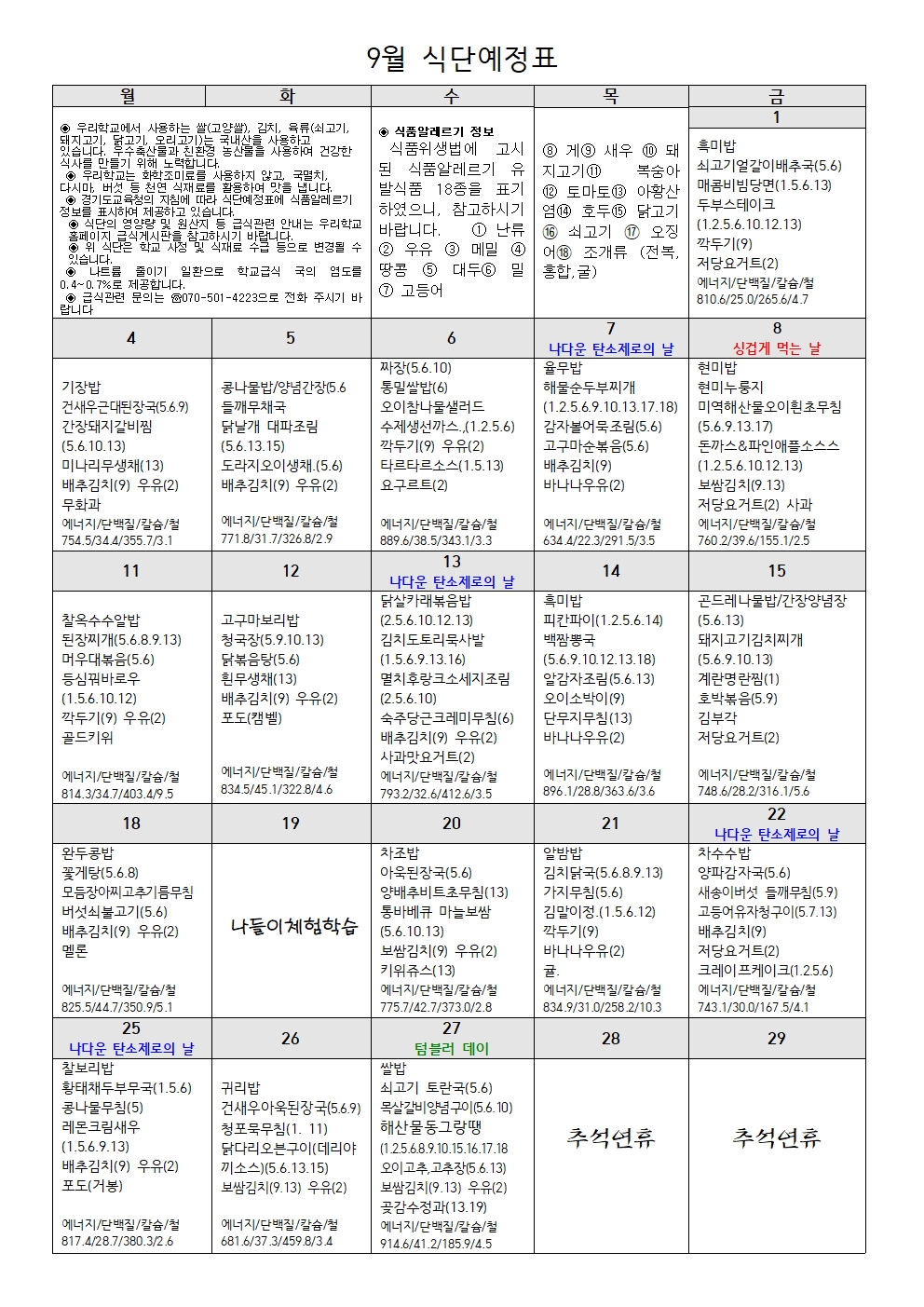 9¿ù ½Ä´Ü¿¹Á¤Ç¥¿Í ¿µ¾ç¼Ò½ÄÁö