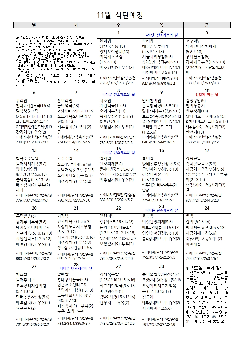 11¿ù ½Ä´Ü¿¹Á¤Ç¥¿Í ¿µ¾ç¼Ò½ÄÁö