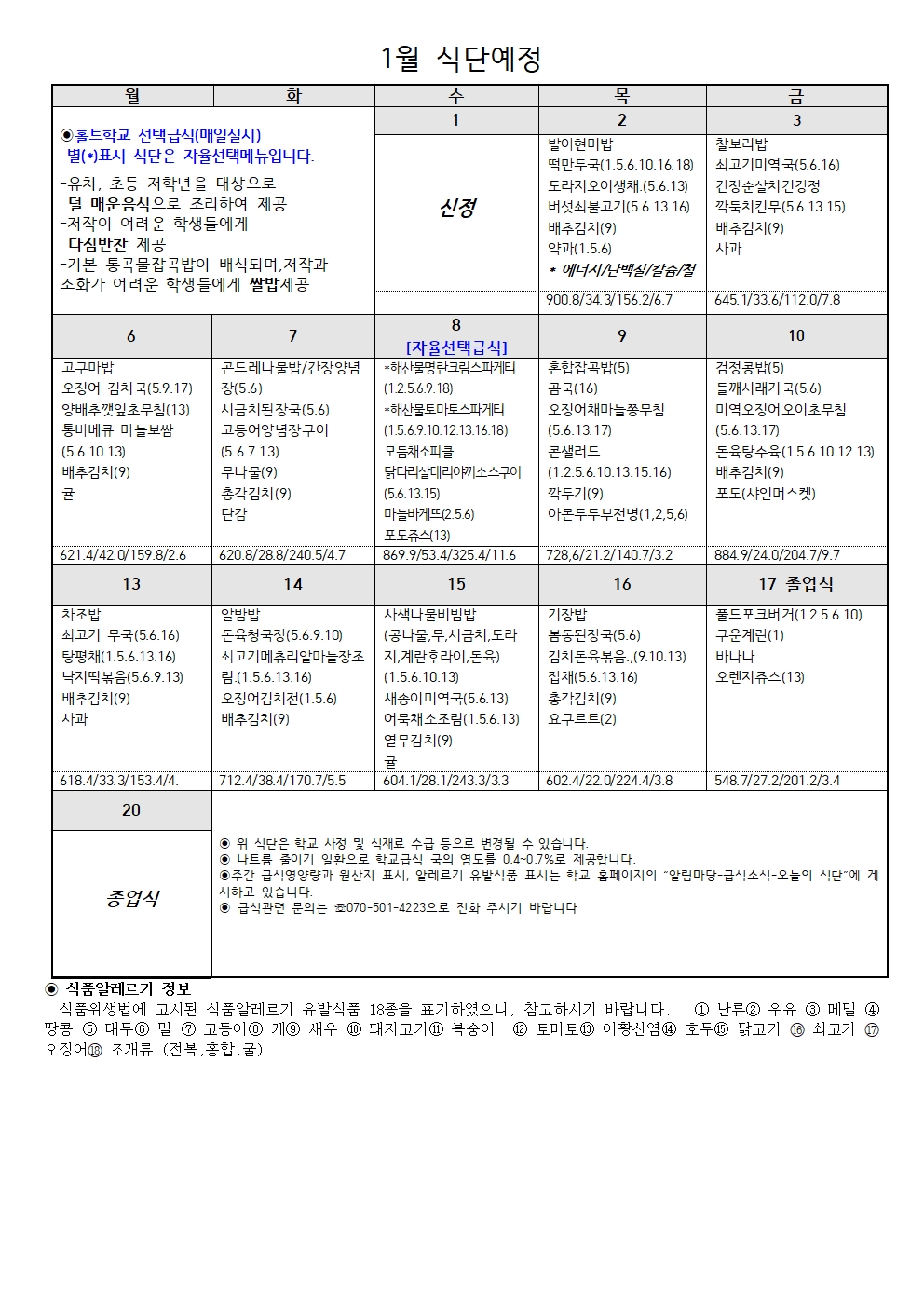 1¿ù ½Ä´Ü¿¹Á¤Ç¥¿Í ¿µ¾ç¼Ò½ÄÁö