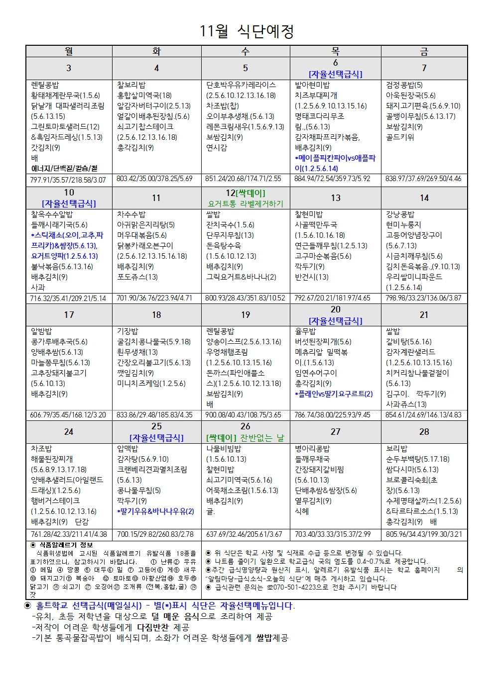11¿ù ½Ä´Ü¿¹Á¤Ç¥¿Í ¿µ¾ç¼Ò½ÄÁö