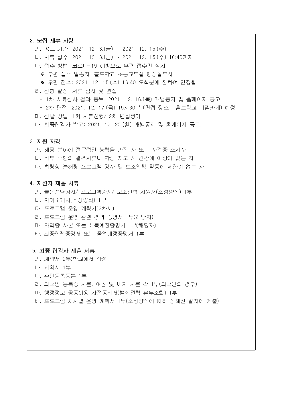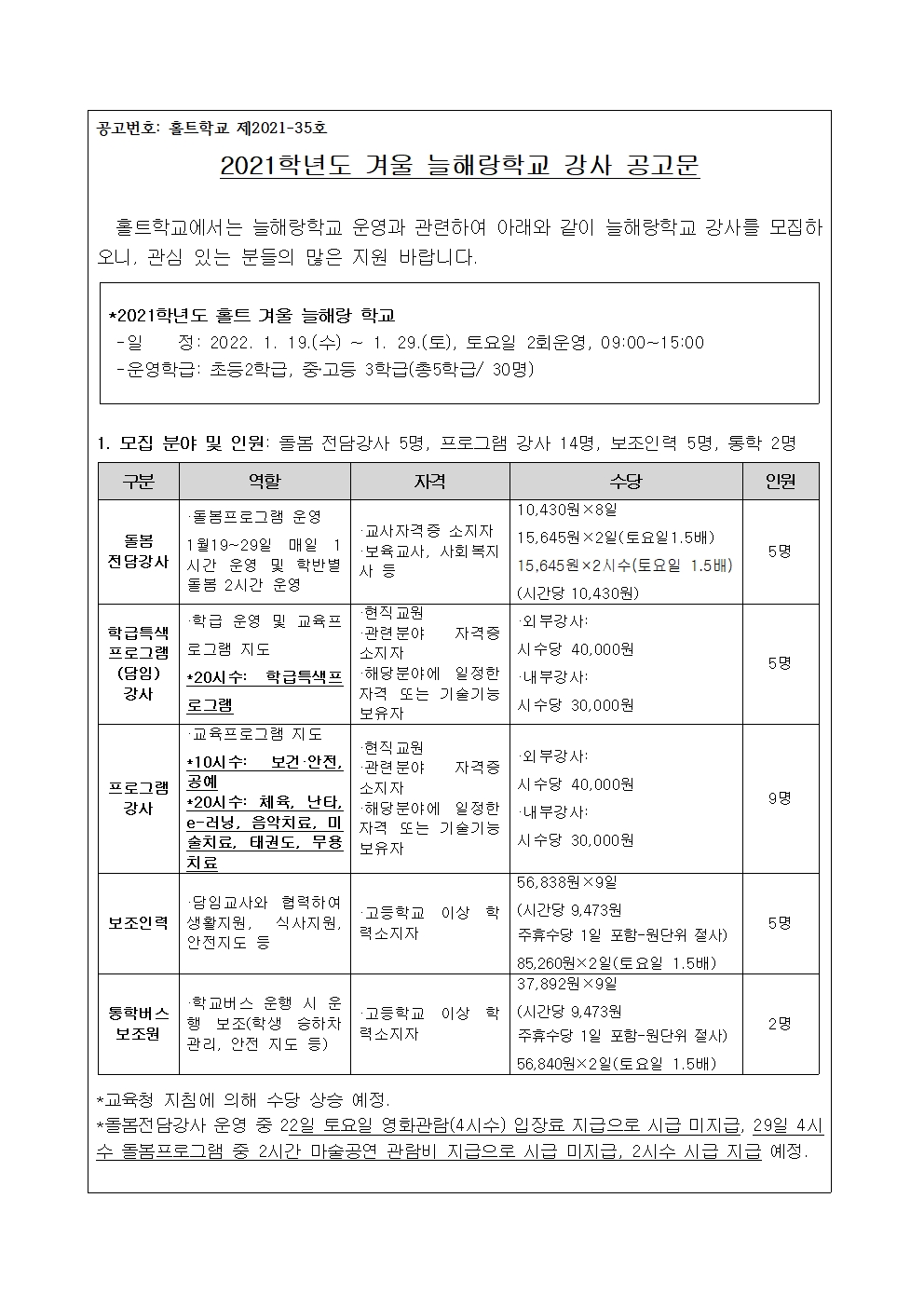 2021Çг⵵ °Ü¿ï ´ÃÇØ¶ûÇб³ °­»ç °ø°í¹®