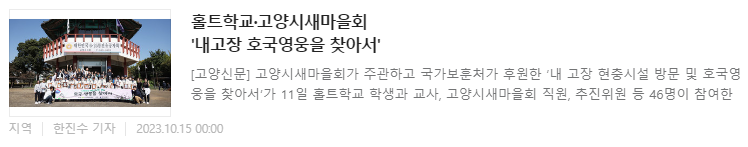 * ±â»ç¿ø¹®  http://www.mygoyang.com/news/articleView.html?idxno=75636